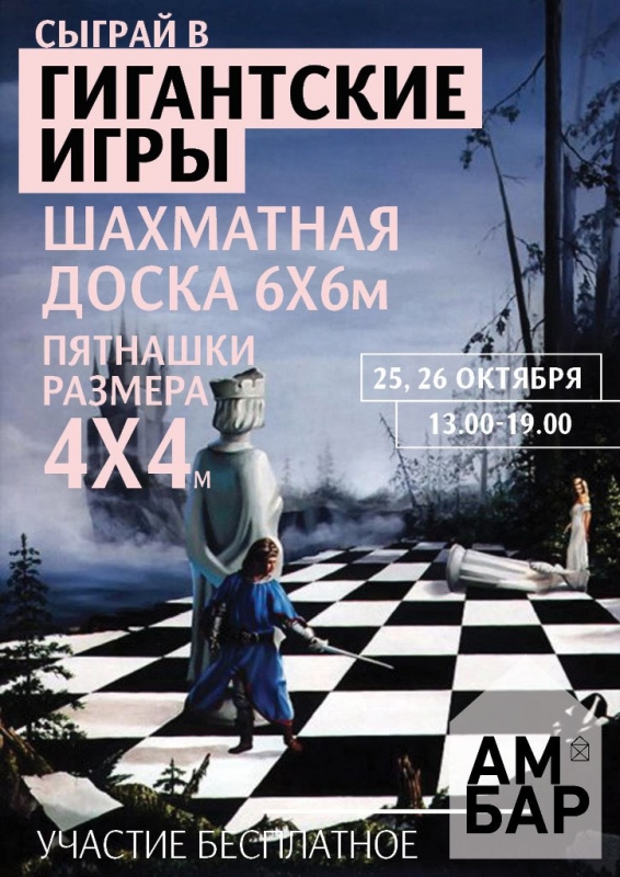 ТК Амбар приглашает детей старше 6 лет принять участие в увлекательной игре: шахматы и пятнашки, где нужно не только думать, но и двигать большие фигуры!