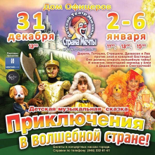 Детский театр мюзикла «Страна Мечты» приглашает детей всех возрастов на новогодний хоровод вокруг ёлочки. В фойе вас ждут песни и танцы, весёлые забавы с Дедом Морозом и Снегурочкой! А на сцене вы увидите музыкальный спектакль «Приключения в волшебной стране», в котором Дороти, Тотошка, Страшила, Дровосек и Лев будут бороться против злой и коварной Бастинды! Они должны открыть тайну Волшебной страны! Не пропустите это яркое и костюмированное новогоднее зрелище!