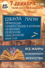 В ТК Амбар детская школа магии для детей старше 3 лет. Детей и взрослых приглашают на сеанс необъяснимой магии! Главный волшебник будет читать ваши мысли, силой воли двигать предметы на расстоянии и заставит их парить в воздухе. Не пропустите настоящее волшебство.