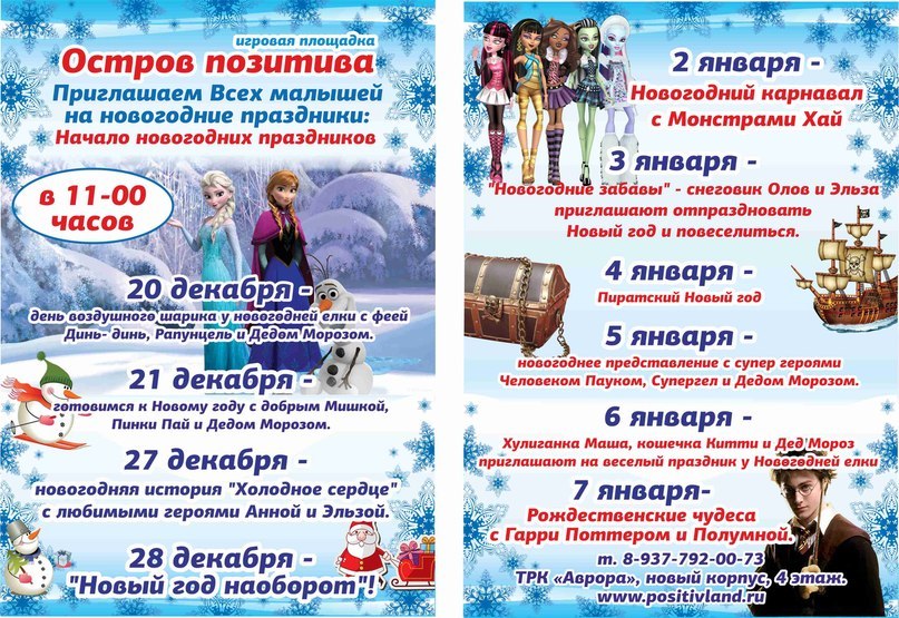 Детская площадка «Остров позитива» в ТРК Аврора приглашает детей всех возрастов на новогодние представления.