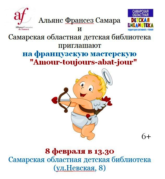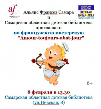 Чтобы быть в День Святого Валентина во всеоружии, Альянс Франсез Самара и Самарская областная детская библиотека предлагают подготовиться к этому празднику и приглашают ребят от 6 до 12 лет на французскую мастерскую «Амур-тужур-абажур».