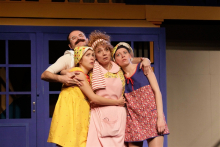 «Манюня» — солнечная уморительная история. С легким армяно-еврейским колоритом (в основном в части музыки, танцев и густых усов) и небольшой дозой реалий из эпохи дефицита. Мир городка Берд — слегка условный и преувеличенный, но ровно до той черты, за которой начинается «чересчур». На сцене нет ничего «просто так». Никто не стоит без дела, действие происходит одновременно во всех точках. Вот, например, хор. Он не просто помогает девочкам «за рассказчика». В этом хоре у каждого свой голос и характер. И своя активная позиция — иногда пионеры вдруг решают наябедничать, иногда подбадривают испуганных девочек, иногда бреются заодно с плюшевым медведем... Есть тут свои выскочки и отличницы, сердобольные и вредины. Манюня и Наринэ все время в делах — нужно все успеть. То побрить руки по совету польского журнала Uroda, то вшей на себе потопить, то дверью сделать на носу «античную» горбинку, как у подруги.
