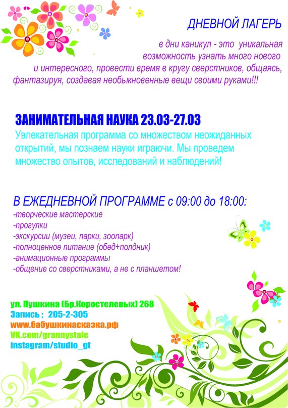 Самарская детская творческая студия «Бабушкина сказка» приглашает в детский дневной творческий лагерь на смену «Занимательная наука» детей от 6 до 14 лет