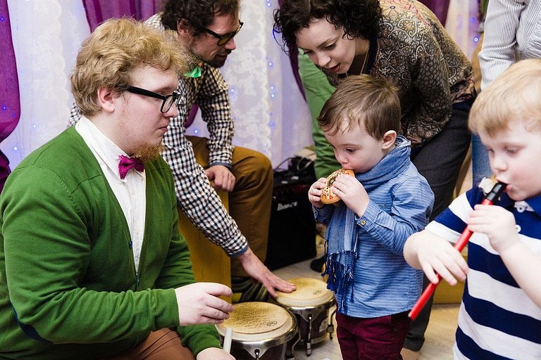 Вторая часть концерта – звуковая импровизация в исполнении маленьких слушателей на классических и экзотических инструментах вместе с музыкантами.