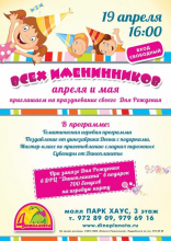 Детский развлекательный комплекс «Динопланета» приглашает на праздник «День именинников» детей всех возрастов, чей день рождения в апреле и мае.