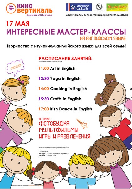 Киновертикаль приглашает детей от 5 лет на мастер-классы на английском языке.