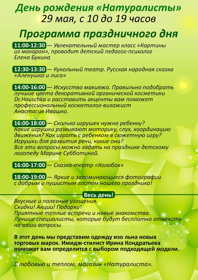 Магазин «Натуралиста» приглашает на празднование своего дня рождения.