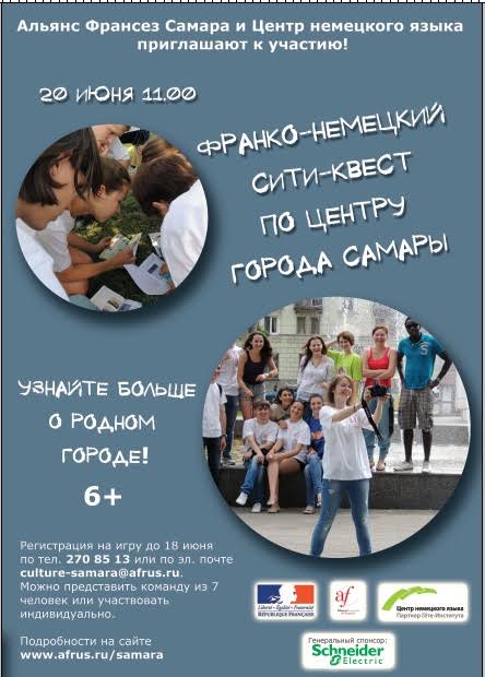 Альянс Франсез Самара и Центр Немецкого языка в Самаре приглашают взрослых и детей от 7 лет принять участие во франко-немецком сити-квесте по историческому центру города Самары.