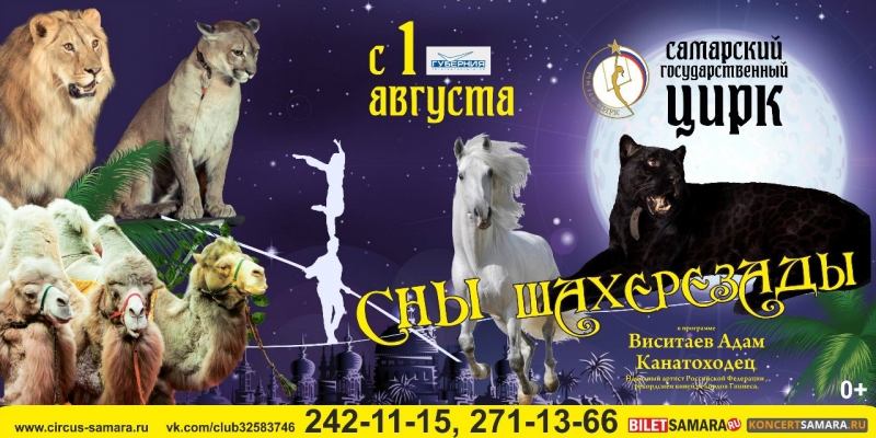 Самарский государственный цирк приглашает детей всех возрастов на грандиозное, костюмированное, поражающее своим великолепием и разнообразием жанров цирковое представление — «Сны Шахерезады».