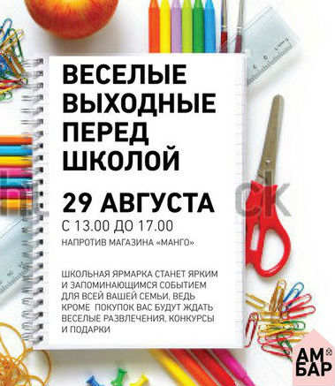 ТК АМБАР приглашает всех школьников и их родителей на школьную ярмарку.