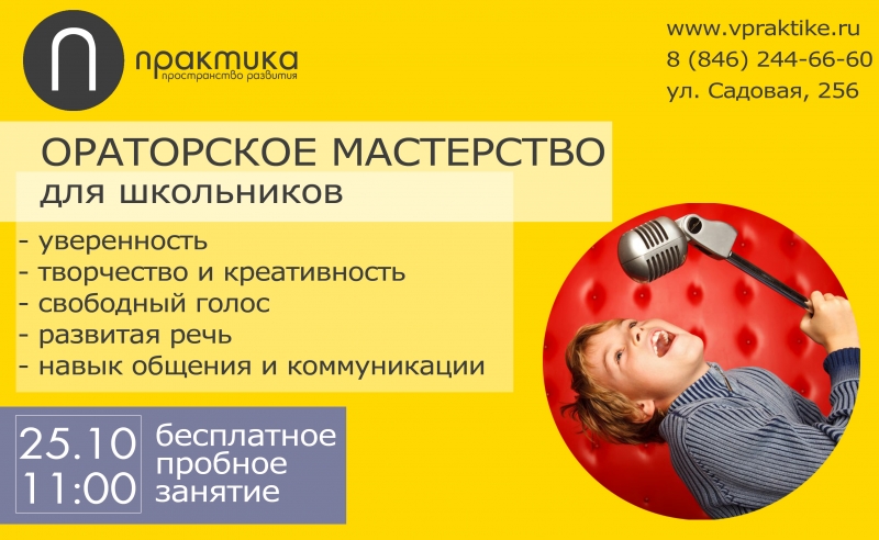 Пробное занятие по ораторскому и актерскому искусству для школьников, Самара