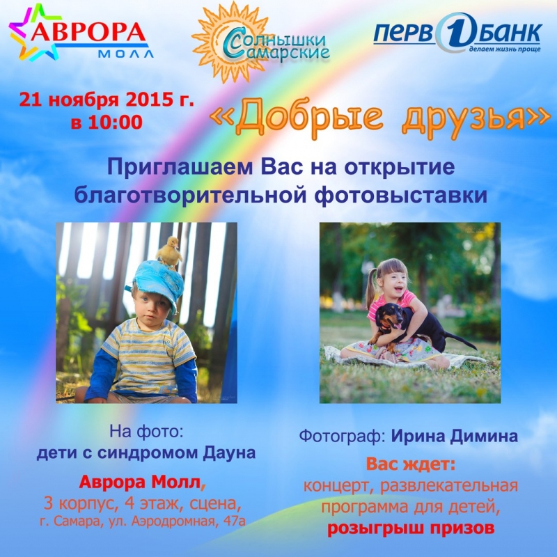 Фотовыставка «Добрые друзья» — это возможность для каждого увидеть таких детей, заглянуть в их мир неповторимой индивидуальности. Для самих детей с синдромом Дауна и их родителей — это возможность показать себя, заявить о своих талантах и маленьких победах, познакомиться и пообщаться друг с другом и просто весело провести время.