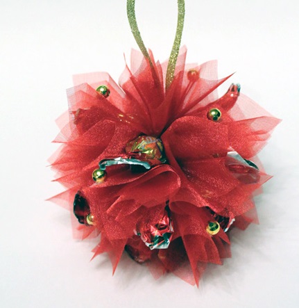 На мастер-классе дети сделают вкусный, красивый и полезный подарок или украшение. Шарик из органзы можно сделать однотонным или разных цветов, украсить снежинками, бусинками или бисером по желанию.