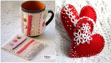Своими руками вы сделаете вязанные и текстильные «валентинки» и яблочки, валяные чехлы для кружек в подарок родным и друзьям.