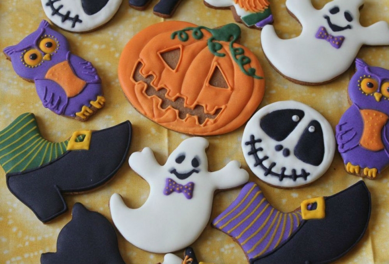 Ребята смогут раскрасить сахарной глазурью ароматные пряничные привидения, тыковки, летучих мышей и даже ведьмочек.