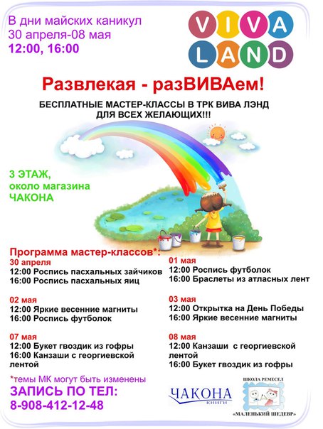 В ТРК «Вива Лэнд проходит серия детских мастер-классов для детей старше 5 лет.