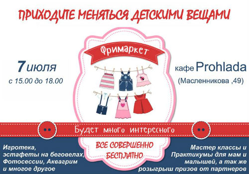 На территории кафе «Прохлада» состоится фримаркет для детей всех возрастов и их родителей.