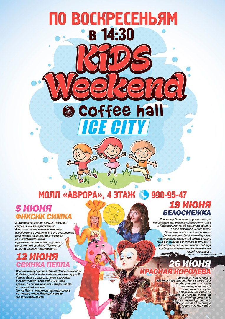 Каждое воскресенье в кафе «Coffee Hall Ice City» проходят детские праздники для ребят всех возрастов.