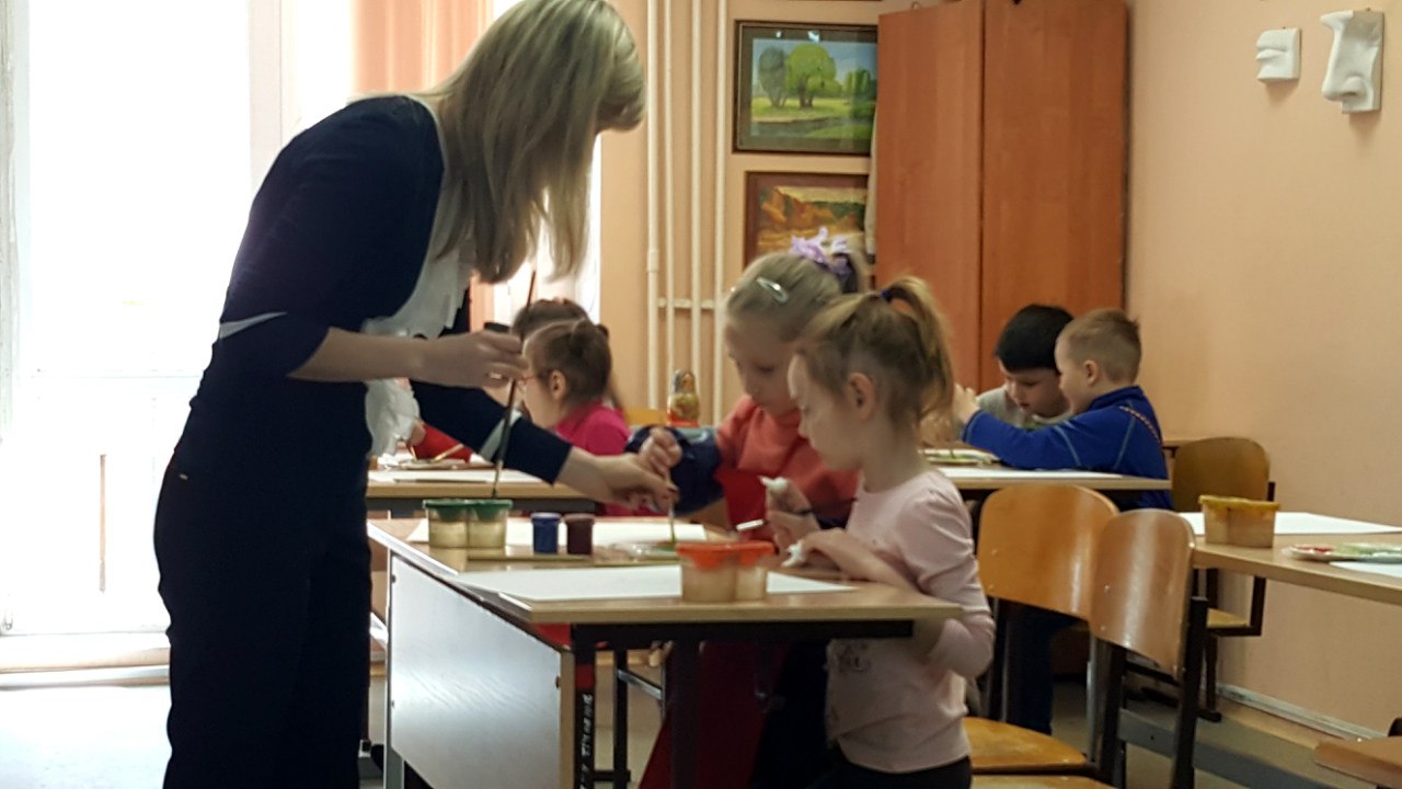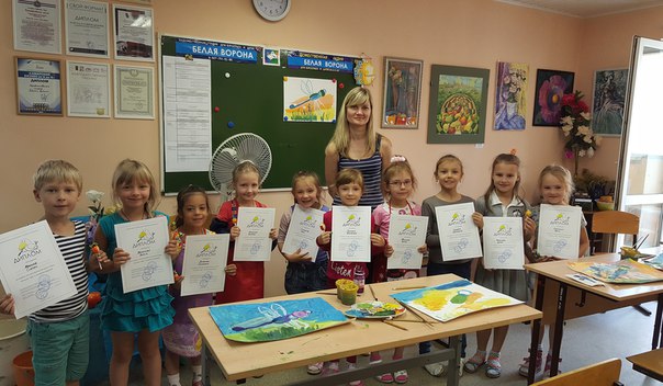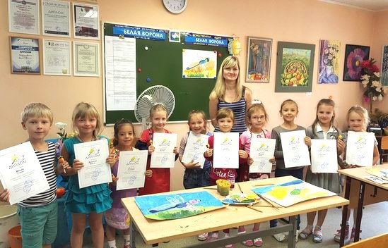 В школе-студии «Белая ворона» детей учат рисовать, в том числе и песком и на воде (эбру), лепить, создавать аппликации, арт-поделки. Также обучают дизайну и компьютерной графике. Проводятся тематические мастер-классы и занятия по архитектуре.