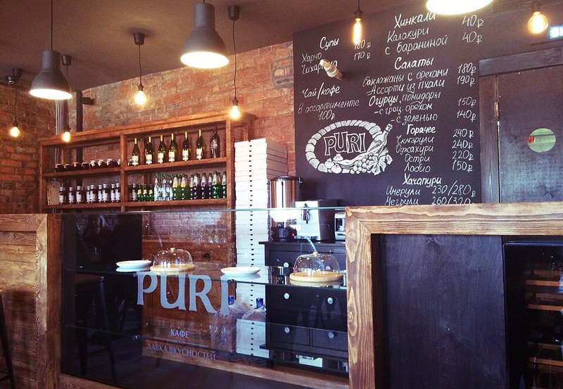 «Puri» — это городская пекарня, лавка вкусностей с грузинской едой и традиционными товарами из Грузии. Кафе встречает гостей спокойным интерьером и почти домашней атмосферой. Всего около 8 столиков. Через стеклянную дверь можно увидеть работу кухни.