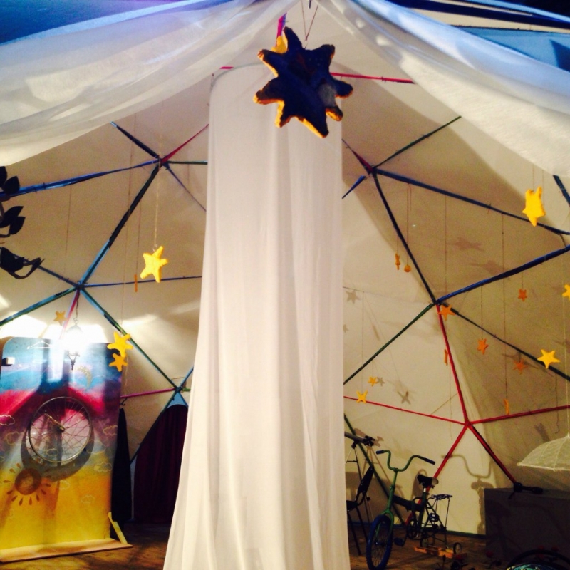 Театр расположился в шатре, зайдя в который, ребенок словно попадает внутрь книги, и, путешествуя по ней, раскрывает себя.