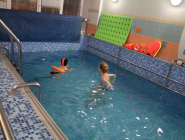Здесь есть: уютный бассейн размером 3х6м, с комфортной температурой воды 31-32°, сухая сауна с температурой 50-65°, профессиональные тренеры, детский массаж.