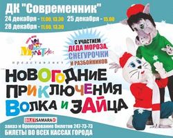 «Новогодние приключения волка и зайца» Что: спектакль Когда: 24 декабря в 11:00 и 13:30, 25 декабря в 15:30, 28 декабря в 11:00 и 13:30 Возраст: 2,5-8 лет Стоимость: 250-600 руб. Контакты: 8-929-706-44-61 Интерактивный Спектакль о Новогодних приключениях волка и зайца, которые не могут обойтись без Деда Мороза, Снегурочки и разбойников. После спектакля фотосессия с главными героями в фойе. Не забудьте захватить фотоаппарат.           КРЦ "Звезда" (ул. Ново-Садовая, 106)