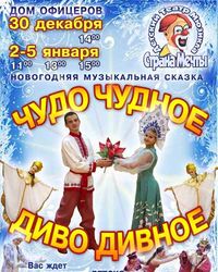 «Чудо чудное, диво дивное» Что: новогодняя елка Когда: 30 декабря в 14:00, 2-5 января в 11:00, 13:00 и 15:00 Возраст: 3-11 лет Стоимость: 150-250 руб. Подарок – 100 руб. Контакты: 332-81-61, 332-64-56 Новогодняя музыкальная сказка. Вас ждет новогодняя Дискотека, игры и забавы с Дедом Морозом и Снегурочкой.