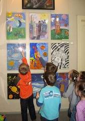 Два зала отдано юным художникам, воплотившим в своих работах мечты и представления о космосе: совершают космические путешествия, строят космические города и населяют далекие планеты.