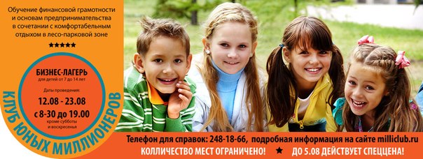 1 июня в Самаре открылась летняя оздоровительная кампания. При 162 образовательных учреждениях начали работу детские лагеря дневного пребывания - отличная возможность отдохнуть для тех, кто остается в городе. Также свои двери распахнули областные пансионаты и базы отдыха - по традиции, они готовят особые школьные заезды. А для малышей помладше начинают свою работу летние лагеря при клубах развития. Они подготовили интересную программу - здесь можно весело и с пользой провести время. Чем занять ребенка летом? Представляем подборку самых интересных предложений клубов! Клуб Granny’s Tale (Бабушкина сказка) В этом году ребят ждут увлекательные смены: ИЮНЬ 10-14 "Построй свой город" 17-21 "Фотострана" 24-28 "Живопись" ИЮЛЬ 1-5 "Парки развлечений" 8-12 "Путешествуй с нами" 15-19 "Приключения Шерлока Хомса" 22-26 "Юный натуралист" АВГУСТ 5-9 "Волшебство театра" 12-16 "Юный ветеринар" 19-23 "Создай мультфильм" Возраст детей с 6 до 12 лет Режим работы: Понедельник - Пятница с 10.00 до 17.00 (по желанию родителей с 9.00 до 18.00) Питание 2-х разовое (обед и полдник) Стоимость 6000 руб. (5 дней, все включено) Обязательные прогулки и походы в парки, зоопарк, музеи, экскурсии по городу по программе.   Клуб юных миллионеров Приглашаются ребята от 7 до 14 лет принять участие  в летнем бизнес-лагере дневного пребывания в Парк-отеле "Дубрава". Отдых для вашего ребенка в лесопарковой зоне в комфортабельном Парк-отеле "Дубрава" на огражденной, охраняемой территории; пребывание в лагере в течение 10 дней с 8.30 до 19.00; доставка детей в лагерь и обратно на специализированном автобусе по маршруту Автовокзал - Дубрава и Дубрава - Автовокзал; трехразовое ресторанное питание (завтрак, обед, полдник); образовательные и развлекательные мероприятия с педагогами и аниматорами; купание в бассейне, игры на оборудованной спортплощадке. За две недели ваш ребенок получит полное представление о том, откуда берутся, куда уходят деньги и как их приумножать; сформирует идею своего уникального детского бизнеса; с оставит и защитит свой первый бизнес-план; сформирует навыки самопрезентации и публичных выступлений; научится сотрудничать с другими на взаимовыгодных условиях. Стоимость участия в летней программе составляет 13850 руб. при оплате до 5 августа 2013 г., после 5 августа - 15000 руб. Подробнее на сайте клуба   Семейный досуговый клуб «АБВГДейка» Уникальная тематическая программа лагеря включает: творческие проекты, культурно-развлекательную программу, мастер – классы, игры, конкурсы, дискотеки, походы на выставки, в музеи, отдых на реке, развитие творческого мышления ребёнка с применением ТРИЗ-технологий. Лагерь действует с 03 июня по 23 августа. Продолжительность одной смены – 2 недели. Время пребывания - с 11-17 часов, суббота и воскресенье – выходные дни. Стоимость одной смены - 7 900 руб. Питание включено. Возраст детей - от 6 до 12 лет. Все дети  от 6-12 лет приглашаются на День гостя в летний городской лагерь клуба «АБВГДейка»! В этот день с 14.00 до 17.00 бесплатное посещение для Вашего ребенка. Дату посещения вы можете согласовать по телефону 271-61-61.   Семейный клуб «Лисёнок» Очередной дневной творческий лагерь состоится с 24 по 28 июня . Приглашаем к участию ребят от 6 до 11 лет. В программе лагеря теневой театр, мультстудия, научные опыты, спортивные и музыкальные игры и различные творческие мастерские. Запись по тел. 8 927 201 17 30, тема Вк