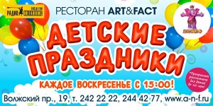 В ресторане «Арт&Fact» полных ходом идет сезон веселых воскресений. В программе развлекательное шоу, конкурсы, эстафеты, детское меню.