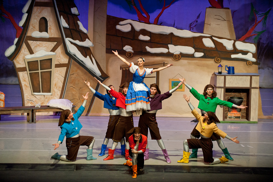 Балет Б. Павловского в 1-м действии по мотивам сказки бр. Гримм «Белоснежка и семь гномов» — подарок театра самым маленьким зрителям. В этом спектакле действуют гномы, обитатели леса – белочки, лисички, и, конечно, красавица-Белоснежка. А заняты в постановке и взрослые артисты балета, и учащиеся хореографического училища.