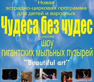 В программе: уникальные цирковые номера, весёлые клоуны, ростовые куклы - герои любимых мультфильмов, конкурс мыльных пузырей. А также игры, розыгрыш призов. Вы увидите пузыри – гиганты, мыльный дождь, человека в пузыре, шлейфы и фигуры из мыльных пузырей и многое другое. Все ребята смогут поучаствовать в представлении, попробовать свои силы на сцене, поиграть с мыльными пузырями и получить подарки от артистов, а также сфотографироваться с участниками спектакля. Перед началом представления детей ждет конкурс рисунков. Перед представлением весёлая мини-дискотека в фойе. Не пропустите самый замечательный праздник детства!