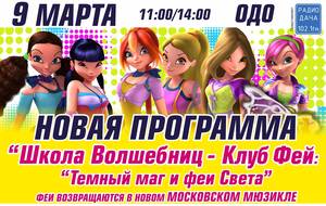Новый Московский мюзикл по мотивам любимых историй Игинио Страффи - "Школа волшебниц – Темный маг и феи Света". Подруги из Школы Волшебниц, продолжая свои приключения, должны выдержать магическое противостояние с могучим темным магом. Справятся ли они? Конечно, ведь они - Новая Команда Сил Света!9 марта (ПТ) в 11.00 и 14.00, 100-900 руб., до 8-9 летОкружной Дом офицеров, ДК на пл.Кироваул. Шостаковича, 7, пр. Кирова, 145