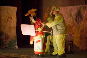 Скоморошье представление в стиле русских «тетёрок» про старика и старуху, живущих под хлебным деревом. Волшебная птичка исполняет желания до поры до времени, но жадность и глупость должны быть наказаны.