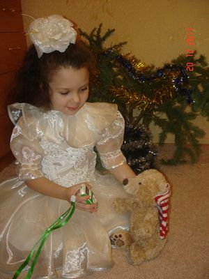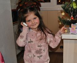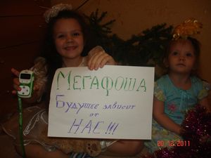 "Сегодня мама забрала меня из садика и всю дорогу странно улыбается. К чему бы это... А когда мы приехали домой, меня ждало настоящее чудо! Дедушка Мороз передал мне телефончик. Маленький, зелененький и НАСТОЯЩИЙ!!! Мама сказала, чтобы мы с сестренкой не боялись оставаться одни, когда она убегает в магазин. Папа рассказал мне о волшебных кнопочках. На них жили мамочка, папочка и две бабулечки. Я сразу позвонила бабушке, а она сказала, что тоже такой хочет! 0))) Вот смешная, он же только для ребят! Сестренке дала посмотреть, но у нее ручки пока неловкие и она его нечаянно уронила. Мама сказала: "Ничего страшного, он очень надежный и не боится падений" Дедушка Мороз, спасибо тебе огромное! Это как раз то, о чем я так мечтала! Я назвала его МЕГАФОША. И еще у него чудесные мелодии, и мы с сестренкой любим под него танцевать! Я тебе обязательно покажу на Новогодней Елочке! Приходи обязательно!"