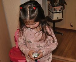 "Ну вот, моя малышка стала совсем взрослой. У нее появился СВОЙ телефонный номер. А как приятно видеть в телефонной книжке "Доченька"! Правда, при разговоре телефон немного "фонит" - слышно собственный голос на другом конце провода. И для читающих деток немного маловат дисплей. Но при сравнительно небольшой стоимости, это несущественные недостатки. Желаю всем чудесных открытий в наступающем Новом году!"