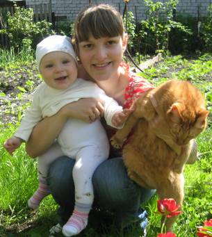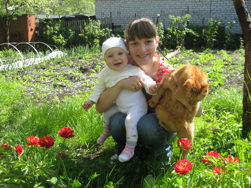 Очень смешно бывает, когда она, увлеченная поеданием, может не заметить, как ее одели. Одеваем кофту, а она на автомате перекладывает печенье из одной руки в другую, просовывая руки в рукава, и жует дальше.