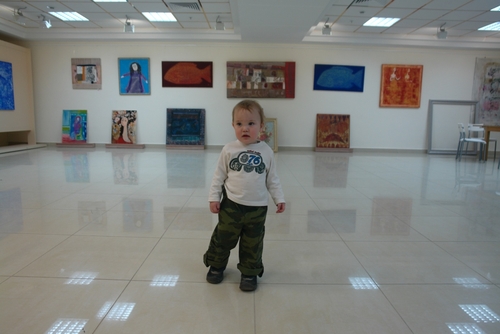 Когда начинать знакомить ребенка с прекрасным? Психологи, педагоги утверждают, что, чем раньше, тем лучше. Главное - найти правильный формат. Чтобы и Вам, и малышу было не только интересно, но и комфортно. Длительное посещение картинных галерей с почти двухгодовалым ребенком занятие достаточно сложное. Сидеть на руках ему уже скучно, куда как лучше побегать ножками и еще лучше потрогать все ручками. Если же это не выполняется, то через непродолжительное время маленький ценитель искусства начинает громко выражать свой протест. А маме не хочется уходить из музея через тридцать минут. Поэтому мы пошли на компромисс. Знакомство с живописью наш сын Ярослав начал с небольшой картинной галереи «Арт-холл Татьяны Саркисян», находится она по адресу Лесная 33, галерея бутиков «Ладья». Представлены в ней оригиналы современных художников, таких, как А. Месропян, А. Липко, К. Медведева. Посещали мы ее вместе с племянником Артемом, молодым человеком 8 лет, который очень любит рисовать и ходит в художественную школу. И ему, и мне картины понравились. Особенно - серия белорусской художницы А. Силивончик, которая специализируется на картинах а-ля детский рисунок.  На них много маленьких, сразу незаметных деталей, которые очень приглянулись Теме, он их нам и показывал.  [caption id="attachment_8248" align="aligncenter" width="500" caption="А. Силивончик"][/caption] [caption id="attachment_8249" align="aligncenter" width="500" caption="А. Силивончик"][/caption] Маленький же посетитель на картины посмотрел, пальчиком на людей попоказывал. И через двадцать минут дал нам понять, что экскурсию пора уже заканчивать. Что мы и выполнили, предварительно  сделал несколько снимков. [caption id="attachment_8251" align="aligncenter" width="500" caption="А. Липко, картина номинирована на премию имени В.Кандинского"][/caption] Что хорошо в галерее – это практически полное отсутствие людей, поэтому громкость разговора маленького можно не контролировать, и бесплатный вход. Ну и, кроме того, если вы любитель современной живописи, то тут можно приобрести интересные работы.  Да и размер галереи замечательно подходит для первых знакомств с картинами.  [caption id="attachment_8252" align="aligncenter" width="500" caption="Е. Добель"][/caption] Улитку на картине увидел Тема, мы бы ее не заметили. А вы ее видите? Режим работы галереи, для тех, кто решит сходит:  пн: выходной, вт –пт: 12-19.30, сб: 12-18, вс: 13-18 Ольга Утина