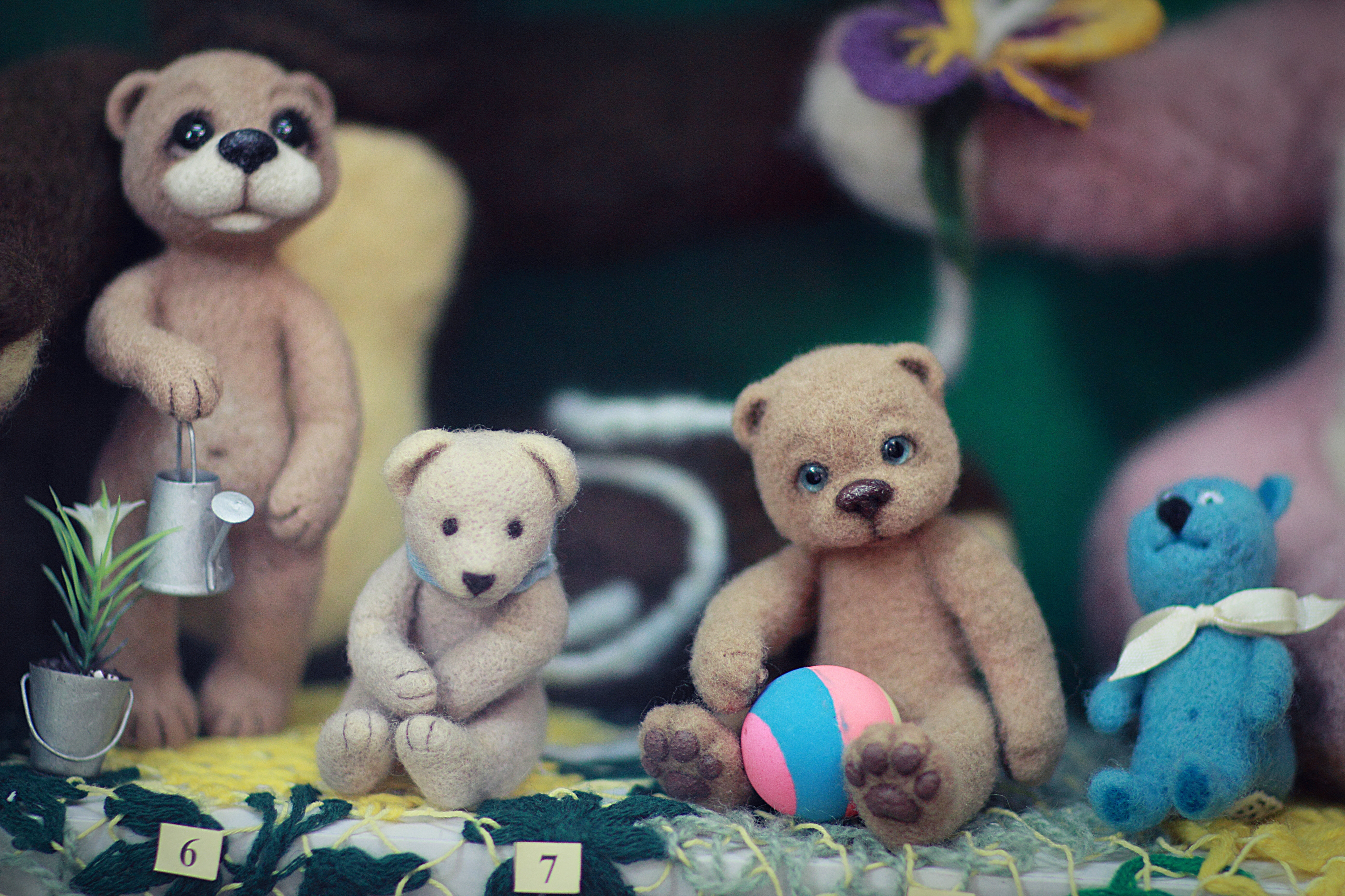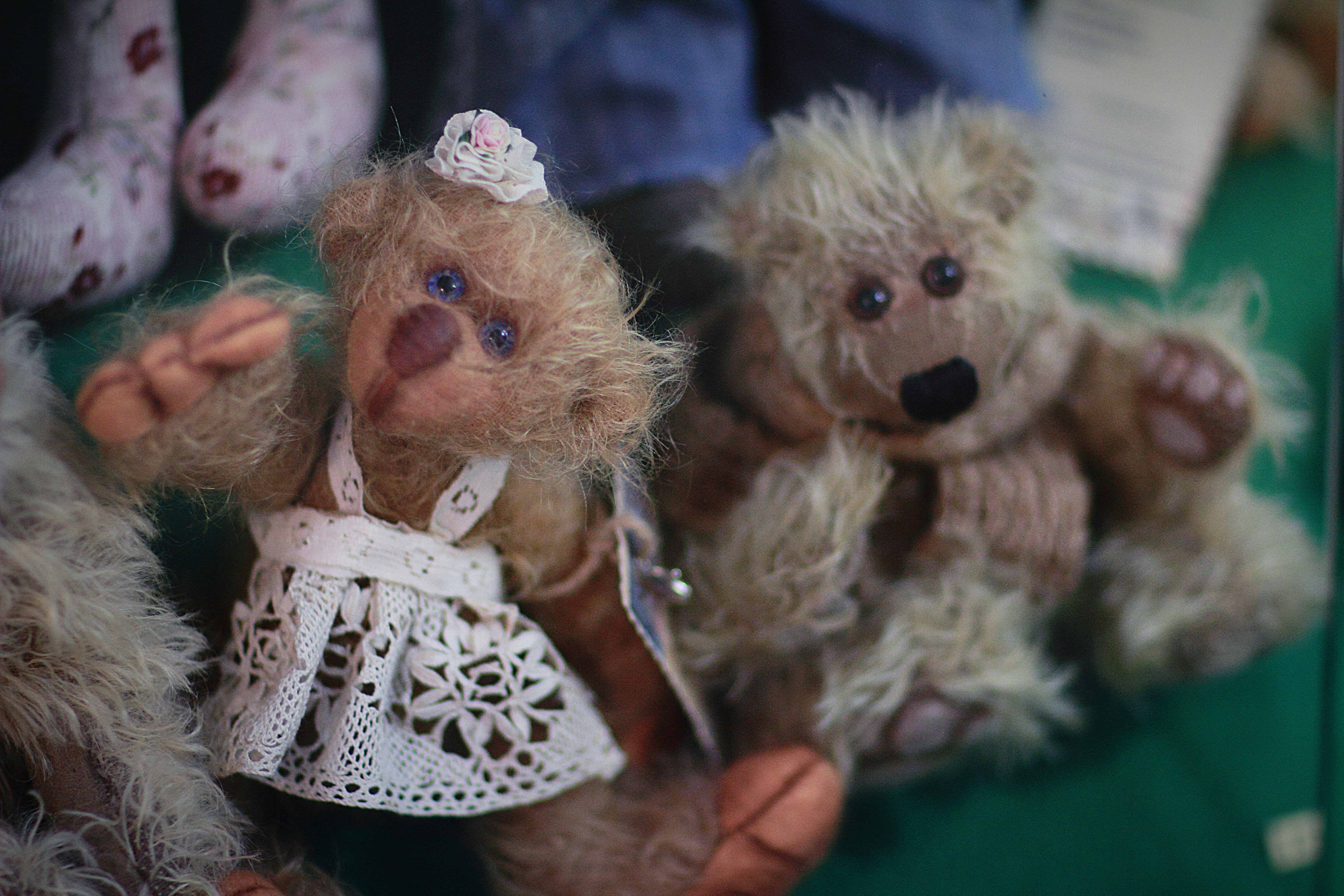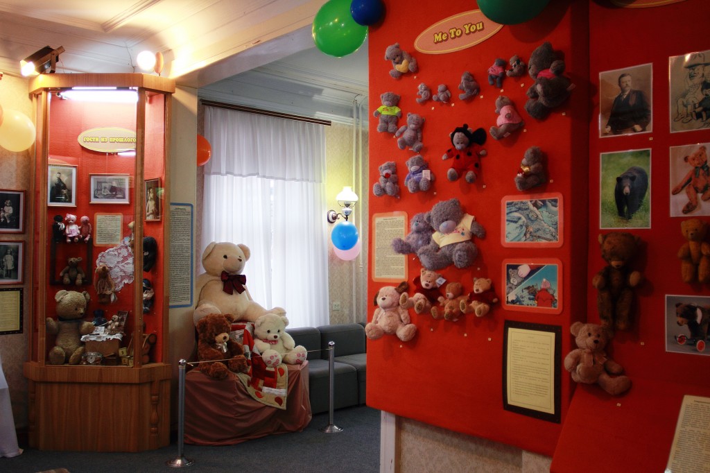 Совсем недавно в Доме-музее В.И. Ленина начала свою работу выставка "Плюшевый десант", посвященная 110-летнему юбилею плюшевого мишки. Нам стало интересно, какие экспонаты там представлены, что нового можно узнать о всеми любимой игрушке. Представляем вашему вниманию наш рассказ о посещении музея, а также небольшой фоторепортаж  - фрагменты выставки и несколько авторских работ, которые нам понравились больше всего. На самом деле их гораздо больше!   На выставке можно узнать историю появления плюшевого медведя, почему некоторых медведей можно звать Тедди, а некоторых нет. Среди экспонатов представлены немецкая и американская  версии игрушки, серия "Аврора", фирменные новогодние медведи Coca-Cola, серия Me to you, о которой можно посмотреть картинки, объясняющие, отчего эти мишки в заплатках и почему у них нос голубого цвета. Очень впечатляют популярные сегодня тортюрные медведи - искусственно состаренные игрушки на шарнирных соединениях. Рядом с ними висит плакат с интересным рассказом об их технологии создания. Вызывает ностальгию шкаф с отечественными мишками - образцами советского производства, гости из прошлого и друзья детства. Среди выставленных экспонатов есть немного деревянных, глиняных, вязанных, свалянных из шерсти, бисерных фигурок медведей, семейство панд, мишки - женихи и невесты, олимпийский мишка. Прекрасны в своей неповторимости рукотворные и авторские игрушки - мы публикуем несколько их фотографий с указанием автора. Разумеется, не обошлось без Винни-Пуха - по версии автора Алана Милна (воплощенной в мультфильме студии Дисней) и по отечественной версии Хитрука. Медведи такие разные и такие прекрасные - грустные и веселые, с аксессуарами и без, каждый со своей историей и судьбой. Приходите любоваться! Фотограф - Татьяна Матолина       Автор - Панкрушина Е.В.                             Автор - Авдонина В.Н.                                                 Автор -      Стругин М.В.